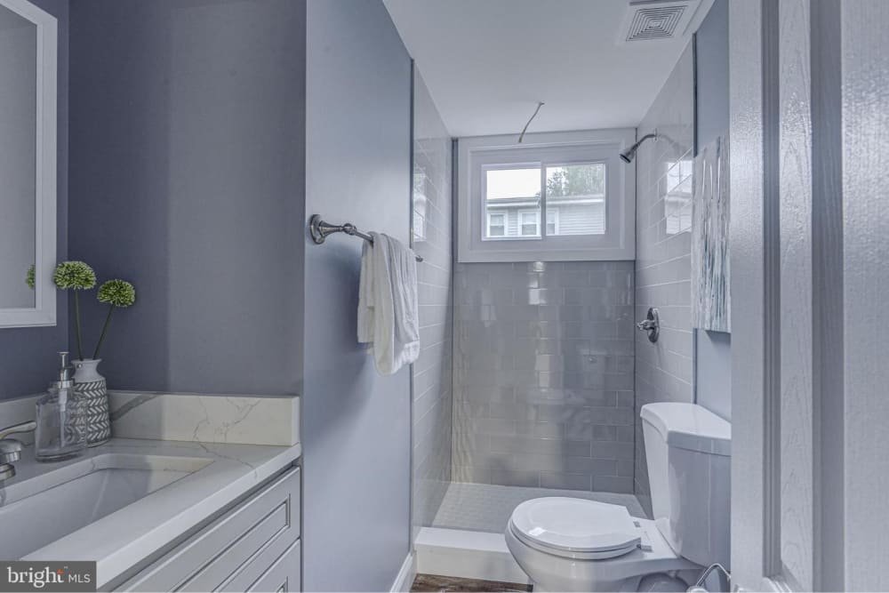 Pristine Lochearn renovation! This bright and spacious renovated 3BR/2BA is full of beautiful upgrades and tons of living space. Enter via the covered front porch into the foyer containing new lighting and coat closet. The foyer opens to an expansive living room featuring a vaulted ceiling, masterfully refinished hardwood flooring, and a wood burning fireplace. You’ll notice the flood of natural light available in each room and the newly installed windows in the majority of the home. The dining room includes a new hanging fixture and is easily accessible to both the kitchen and living room. The brand new kitchen includes stainless steel Whirlpool appliance package, gorgeous Calacatta quartz countertops (including breakfast bar), white cabinetry with soft close hardware, and a lovely backsplash to bring it all together. Head to the second level to find three large bedrooms each with refinished hardwood, recessed lighting, and excellent closet space. The completely remodeled second level bath includes a tub/shower combination, a double-vanity with quartz top, and exceptional custom tile finishes. Head down to the lower level to find an expansive family room/flex space with recessed lighting and new luxury vinyl flooring. Steps away from the family room is the second full bath with standing shower and gorgeous tile. The open utility room contains plenty of storage space, laundry area, and a chest freezer that conveys. There is a lovely rear brick patio for entertaining and easy parking via the concrete driveway. Entire home has been repainted, new trim throughout, new furnace and AC, new plumbing and lighting fixtures, and much more!