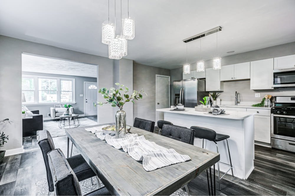 Fully renovated end-of-row townhome! Beautifully updated living room, kitchen, and dining area filled with natural light. Stainless steel appliances. Three spacious bedrooms and full bath on upper level. Great private rear deck off of main level. Finished basement with full bath and laundry area. Plenty of off-street and street parking!