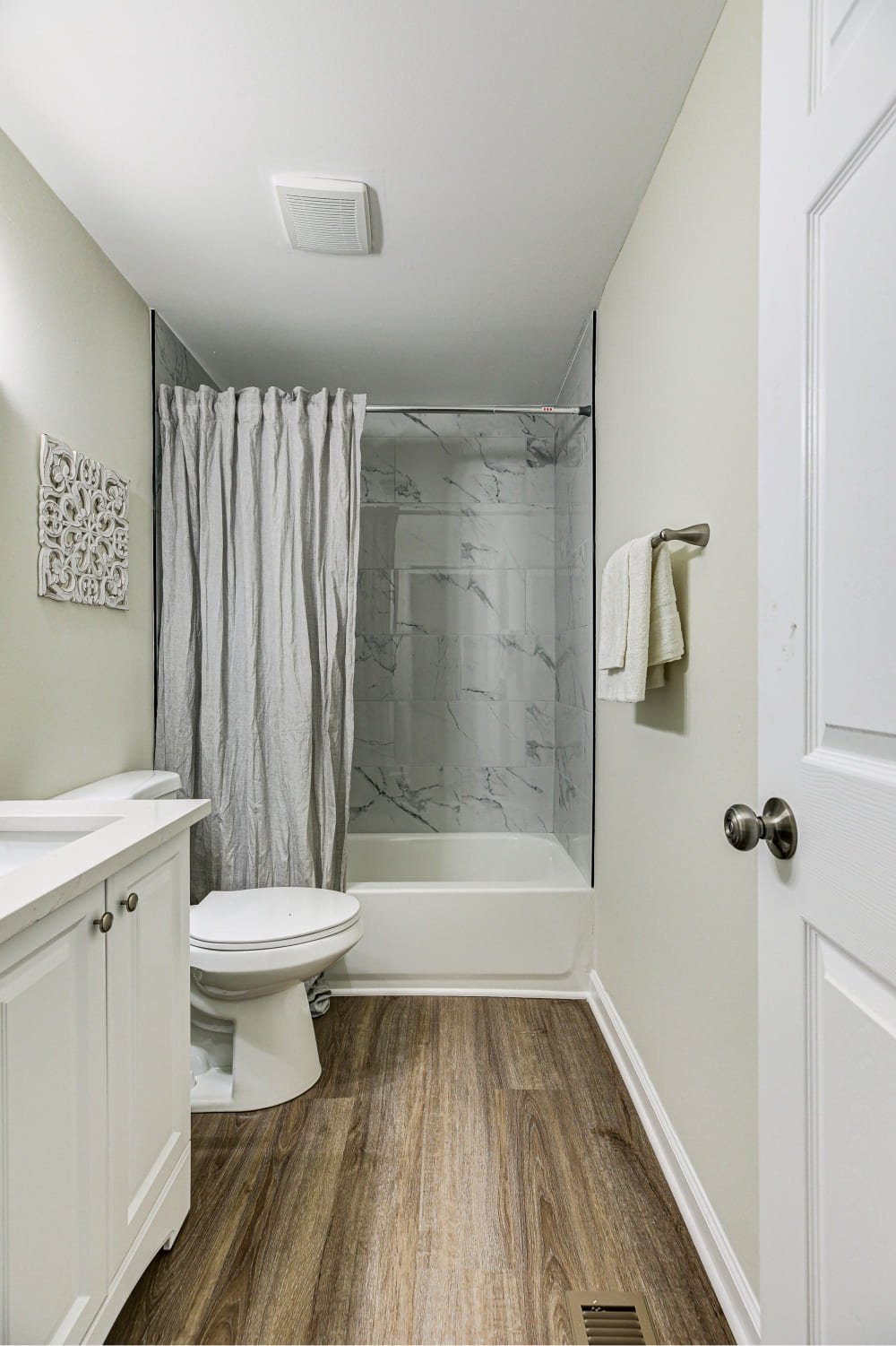 Beautifully updated Chesterfield colonial featuring 4BR/2.5BA, private parking, and wonderful rear deck. This home is situated on a quiet, tree-lined cul-du-sac. Enter the home to find a freshly painted and sun-filled living room leading to the dining room and kitchen. The kitchen includes brand new quartz countertops, backsplash, new ss appliances, a crafty built-in, and ample cabinet storage. This first level also includes a family room with recessed lighting, a convenient half bath, and access to the private rear deck for enjoying AM coffee and entertaining. The second level includes all 4 bedrooms. Each bedroom has been freshly painted, carpeted, and includes new fixtures. The primary bedroom includes a newly renovated full bathroom with custom tile, new vanity, and beautiful stand-up shower. The hall provides access to a storage closet and the second fully renovated full bathroom including tub/shower combo with ceramic tile surround. The lower level has amazing ceiling height and contains even more finished space – there are 2 large finished spaces that offer incredible flexibility as rec rooms, additional family rooms, office, extra bed, etc. The utility area includes plenty of space for storage, the heat pump system, as well as the washer/dryer hookup. Basement offers access to the backyard. The entire home has been freshly painted, includes new flooring, fenced backyard, finished basement, recessed lighting, and much more!